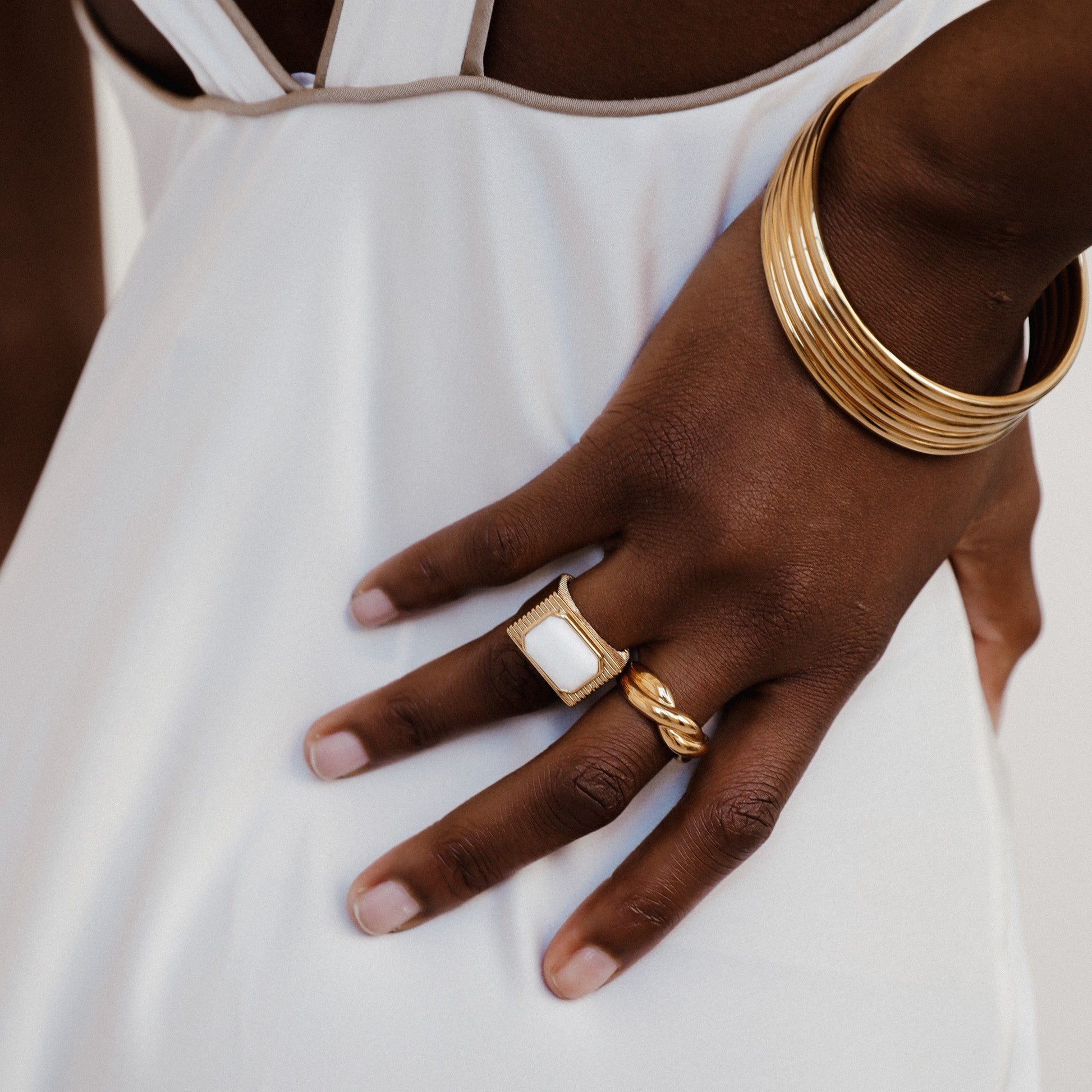 With its twists and turns and chunky size, the Donna Ring is a great mixture between elegance and strength.